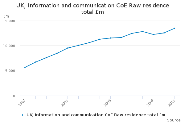 Download this time seriesUKJ Information and communication CoE Raw residence total £m
