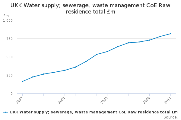 Download this time seriesUKK Water supply; sewerage, waste management CoE Raw residence total £m
