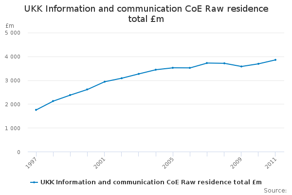 Download this time seriesUKK Information and communication CoE Raw residence total £m