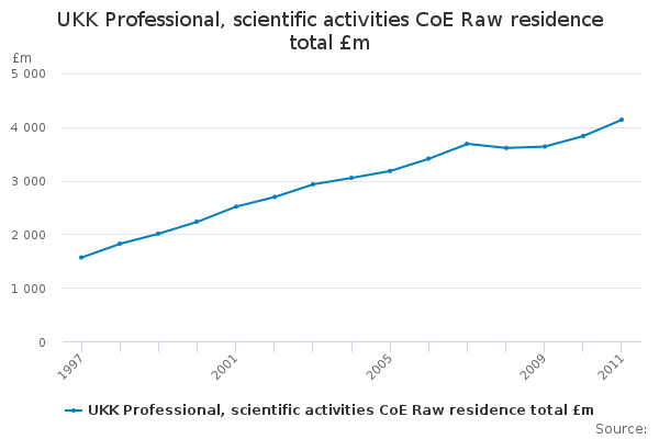 Download this time seriesUKK Professional, scientific activities CoE Raw residence total £m
