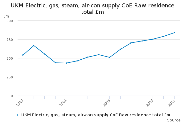 Download this time seriesUKM Electric, gas, steam, air-con supply CoE Raw residence total £m