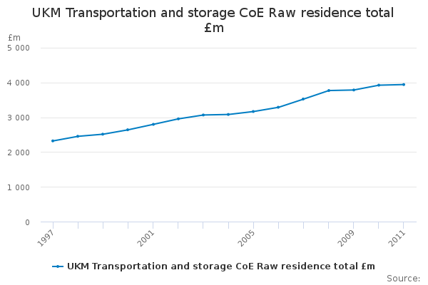 Download this time seriesUKM Transportation and storage CoE Raw residence total £m