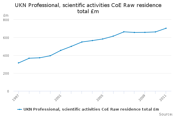 Download this time seriesUKN Professional, scientific activities CoE Raw residence total £m