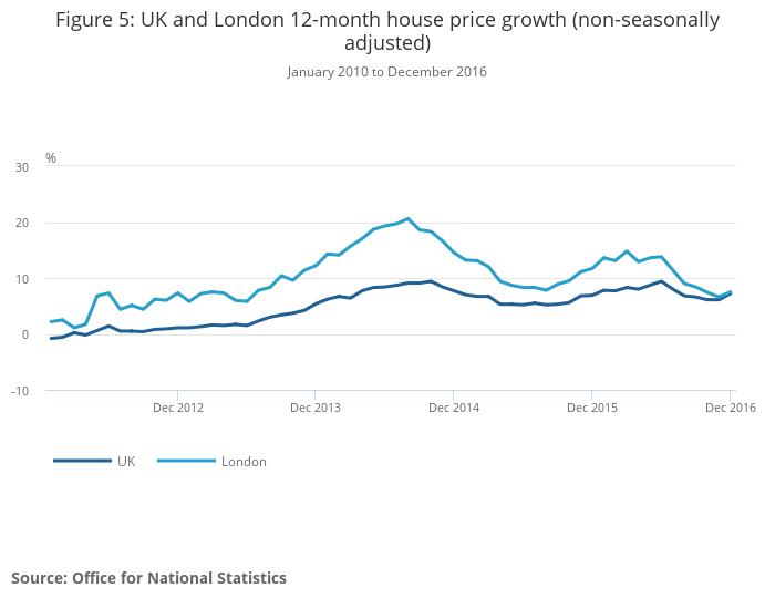 Figure 5: UK and London 12-month house price growth (non-seasonally adjusted)