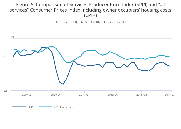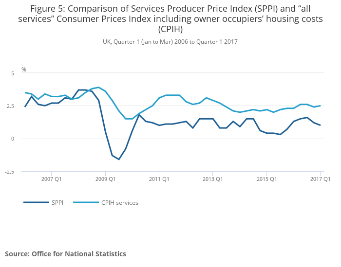 - Services producer price inflation, UK: January to March 2017
