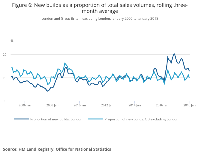 Notes for: Since 2016, new builds account for a greater proportion of property sales in London compared with the rest of Great Britain