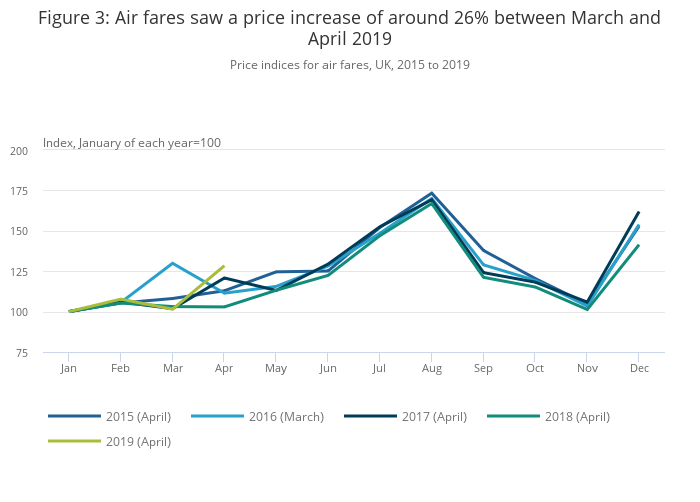 Download this chart Figure 3: Air fares saw a price increase of around 26% between March and April 2019