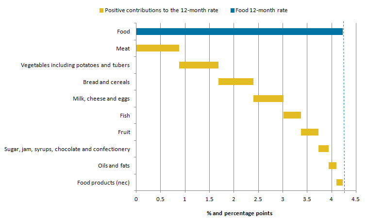 Figure 3: Contributions to the 12-month growth rate in the food category of the Consumer Prices Index including owner occupiers’ housing costs