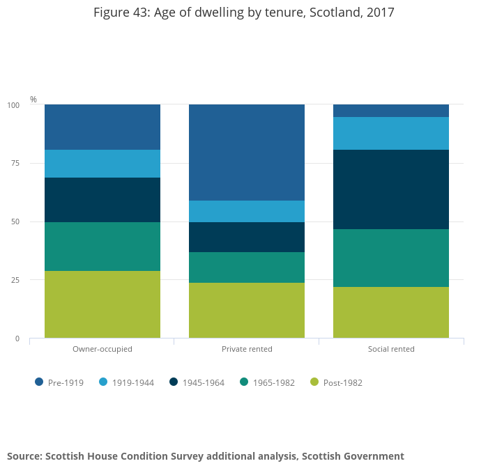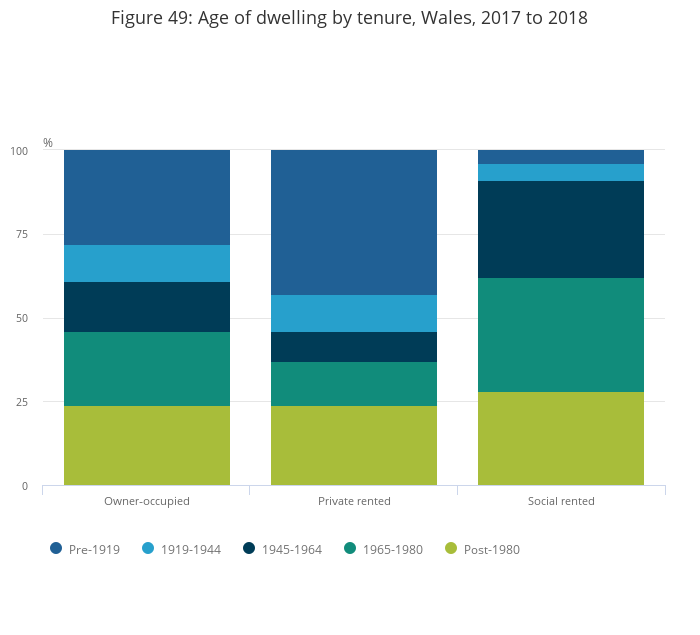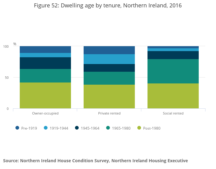 Northern Ireland has the newest private rented dwelling stock (38% built after 1980) in the UK, while Wales has the oldest (43% built pre-1919).