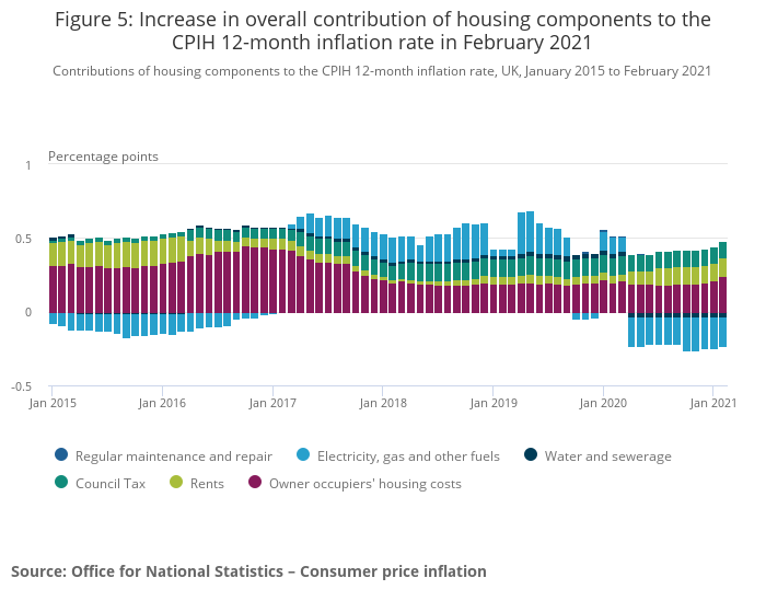 Figure 5: Increase in overall contribution of housing components to the CPIH 12-month inflation rate in February 2021