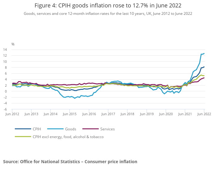 Figure 4: CPIH goods inflation rose to 12.7% in June 2022