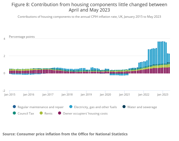 - The Consumer Prices Index including owner occupiers' housing costs (CPIH) rose by 7.9% in the 12 months to May 2023, up from 7.8% in April.