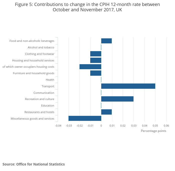 Figure 5: Contributions to change in the CPIH 12-month rate between October and November 2017, UK