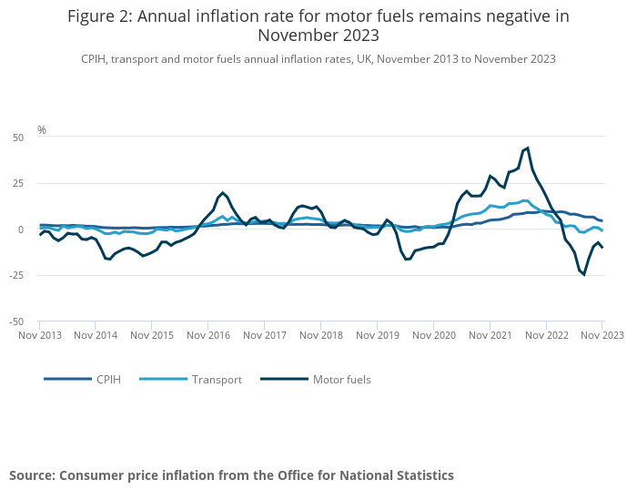 Figure 2: Annual inflation rate for motor fuels remains negative in November 2023