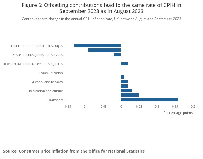 Figure 6: Offsetting contributions lead to the same rate of CPIH in September 2023 as in August 2023