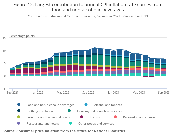 Office for National Statistics (ONS), released 18 October 2023, ONS website, statistical bulletin, Consumer price inflation, UK: September 2023