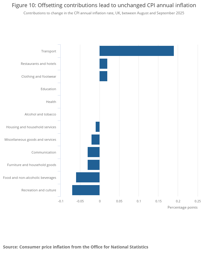 Contributions to change in the CPI annual inflation rate, UK, between August and September 2025