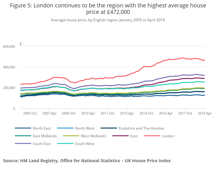 This is a high-level summary of the UK House Price Index (HPI). For full details, including commentary, historical data tables and analytical tools, please see the main publication of the House Price Index, published today (9:30am, 19 June 2019) by HM Land Registry on the GOV.UK website.