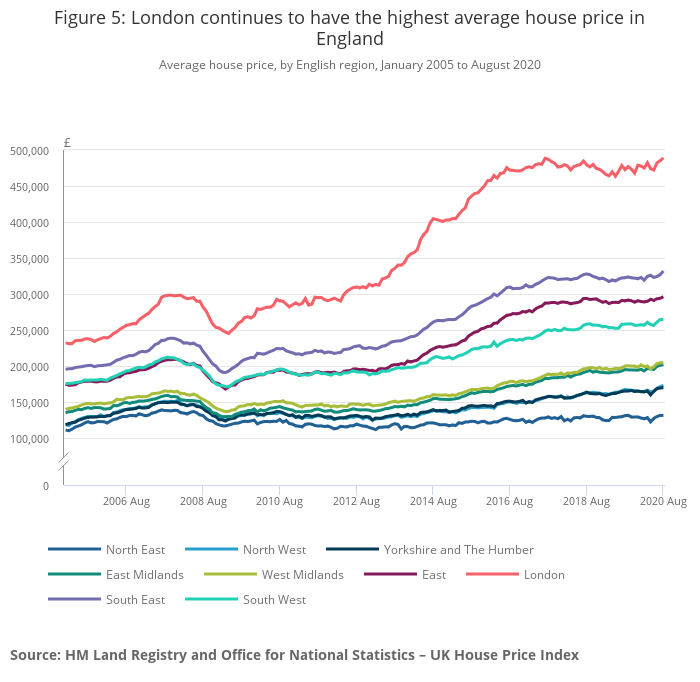 Download this chart Figure 5: London continues to have the highest average house price in England