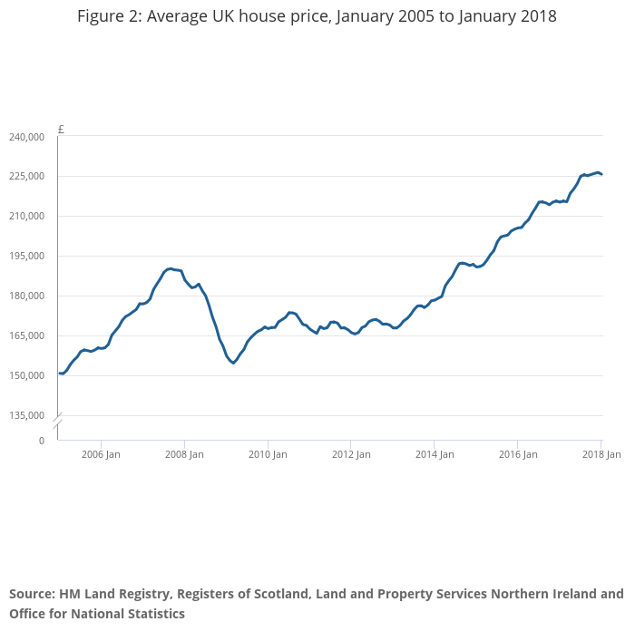 Figure 2: Average UK house price, January 2005 to January 2018