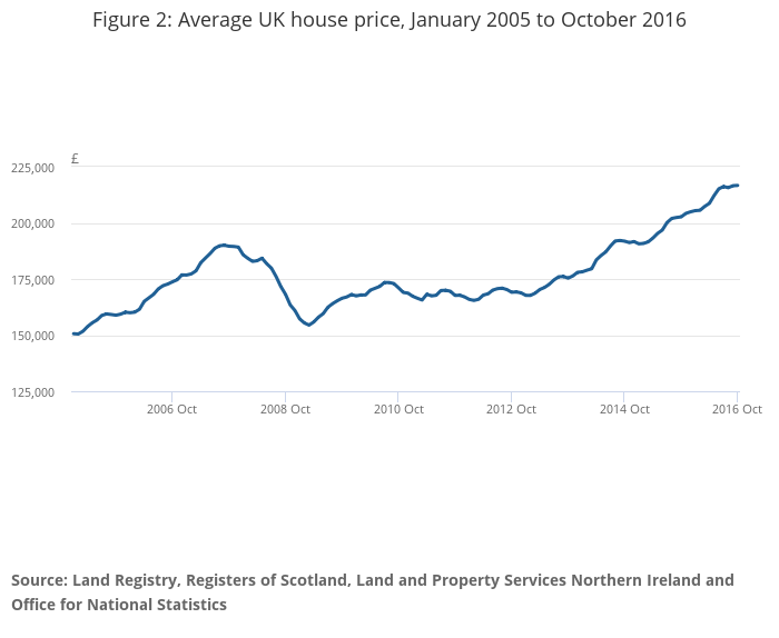Figure 2: Average UK house price, January 2005 to October 2016