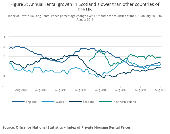 Figure 3: Annual rental growth in Scotland slower than other countries of the UK