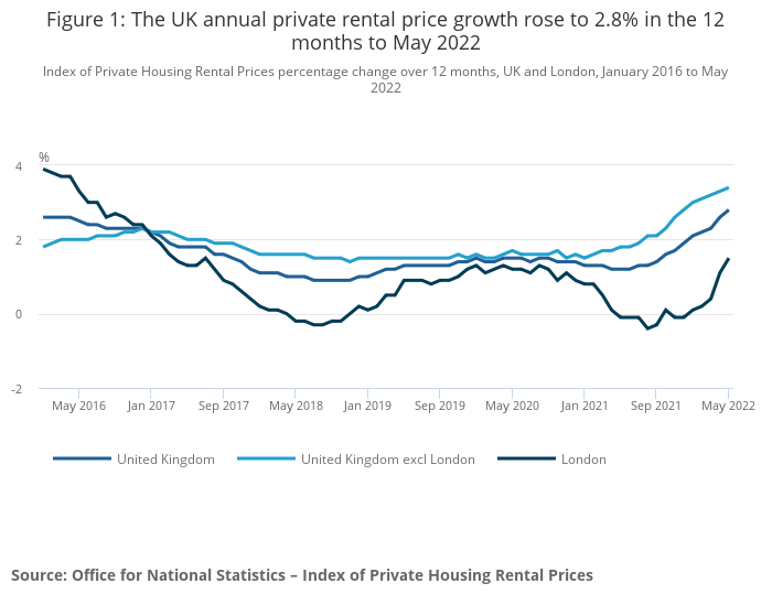 Figure 1: The UK annual private rental price growth rose to 2.8% in the 12 months to May 2022