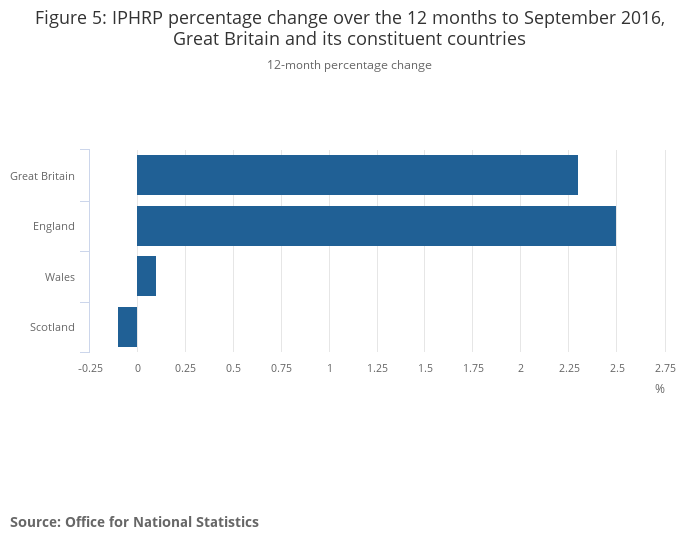 Figure 5: IPHRP percentage change over the 12 months to September 2016, Great Britain and its constituent countries