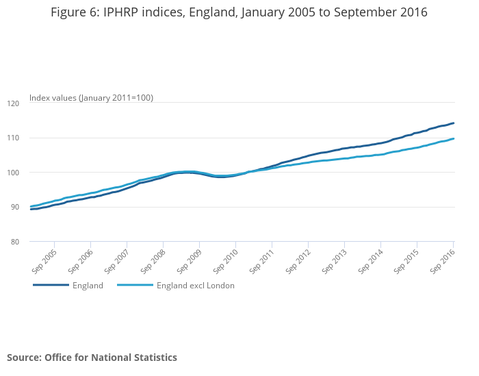 Download this chart Figure 6: IPHRP indices, England, January 2005 to September 2016