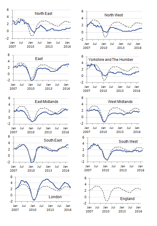 Download this image Figure 7: IPHRP percentage change over 12 months by English region, January 2006 to September 2016