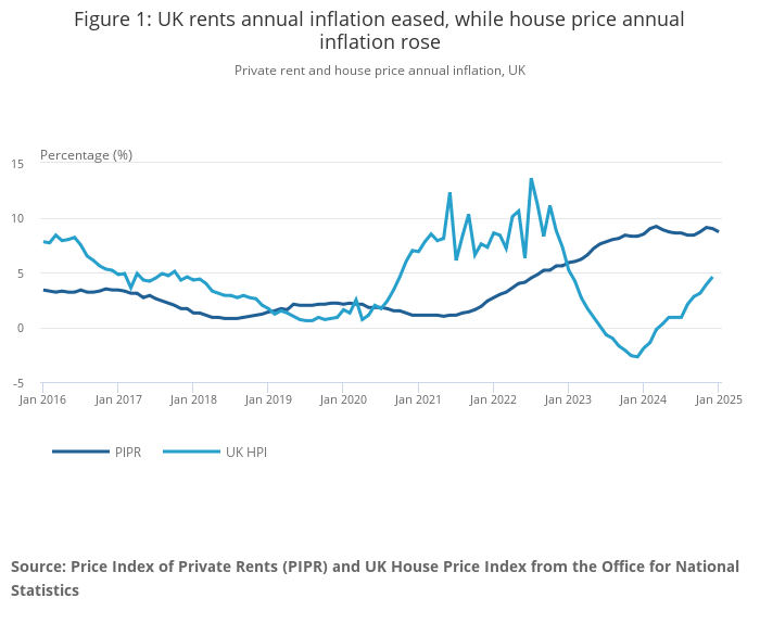 Office for National Statistics (ONS), released 19 February 2025, ONS website, statistical bulletin, Private rent and house prices, UK: February 2025