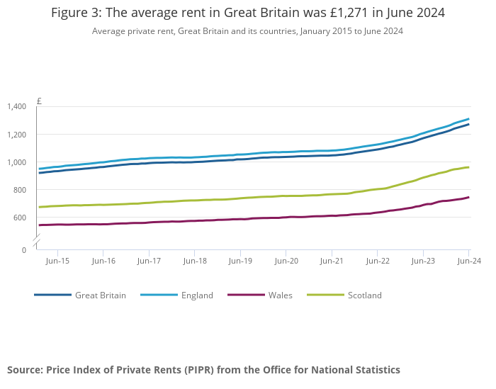 Figure 3: The average rent in Great Britain was £1,271 in June 2024