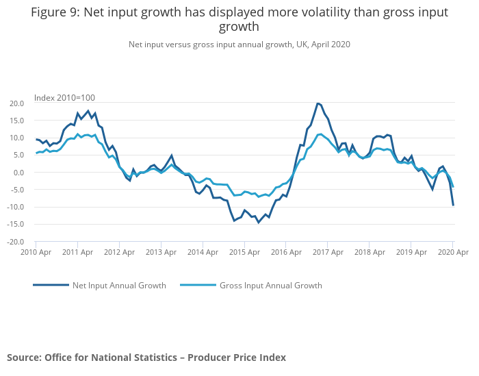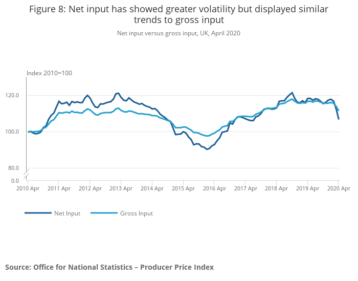 Net input versus gross input, UK, April 2020