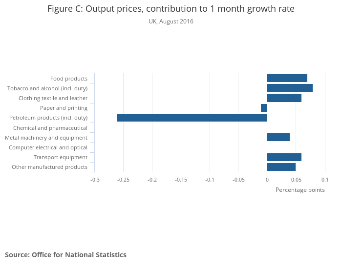 Download this table Table C: Output prices, 1 month change, UK, August 2016