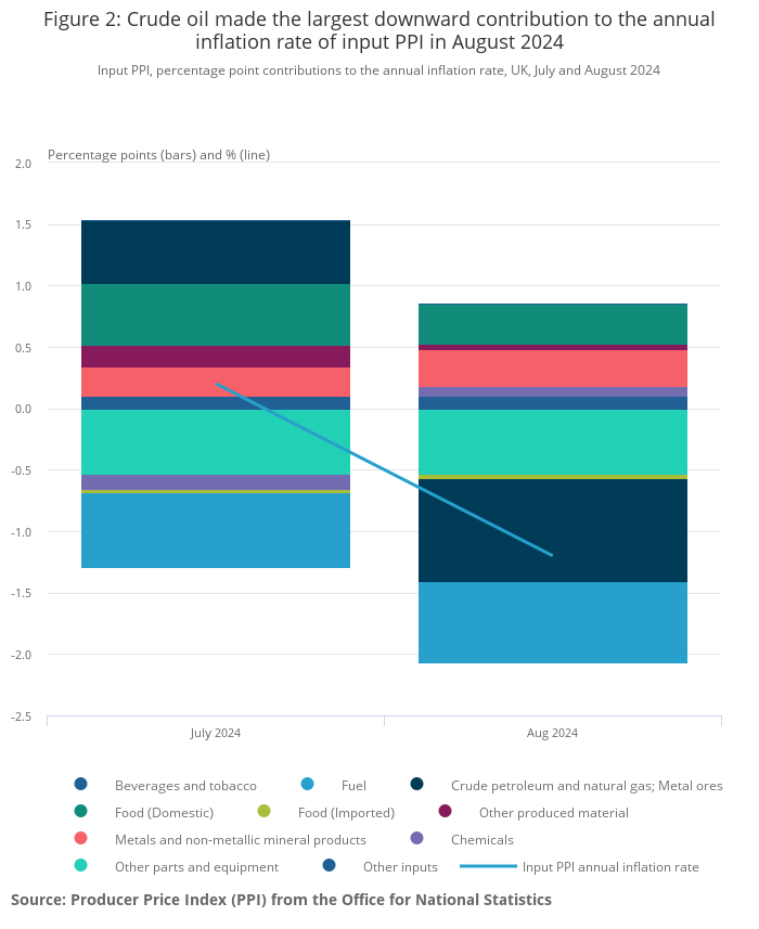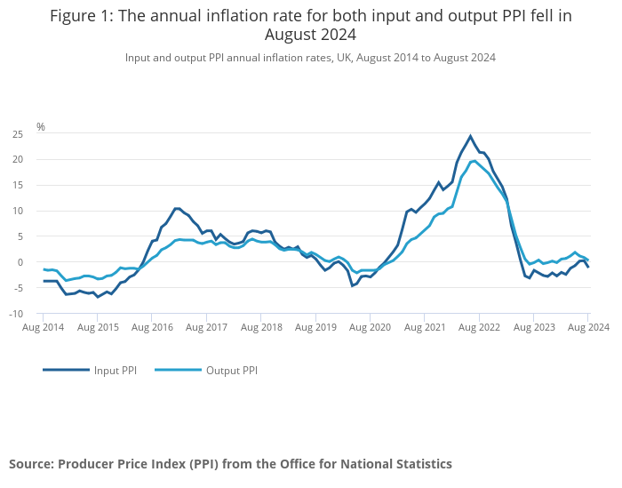 Office for National Statistics (ONS), released 18 September 2024, ONS website, statistical bulletin, Producer price inflation, UK: August 2024