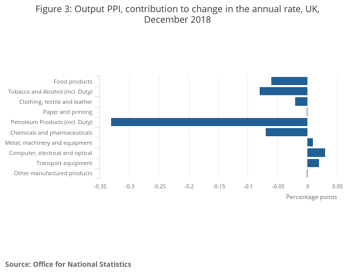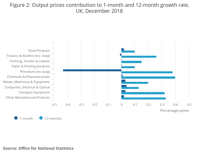 The headline rate of output inflation for goods leaving the factory gate was 2.5% on the year to December 2018, down from 3.0% in November 2018.
