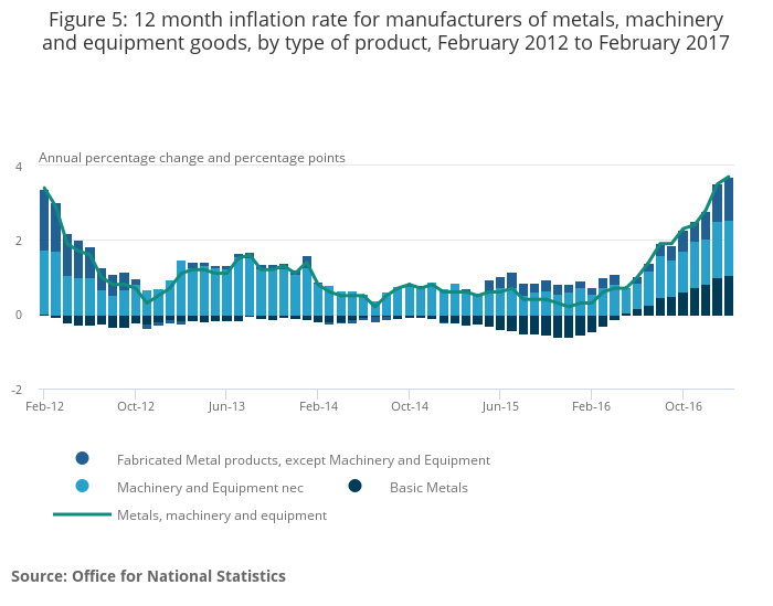 Figure 5: 12 month inflation rate for manufacturers of metals, machinery and equipment goods, by type of product, February 2012 to February 2017