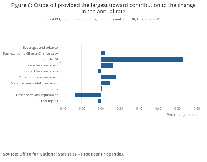 Output PPI, contribution to change in the annual rate, UK, February 2021