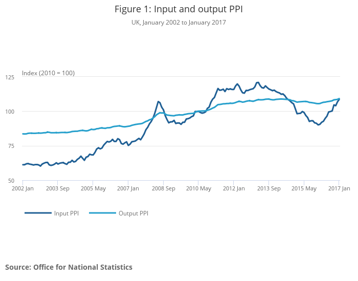 Factory gate prices (output prices) rose 3.5% on the year to January 2017, which is the seventh consecutive period of annual price increases and the highest they have been since December 2011.