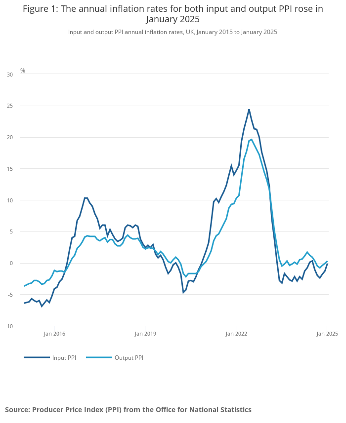 Office for National Statistics (ONS), released 19 February 2025, ONS website, statistical bulletin, Producer price inflation, UK: January 2025