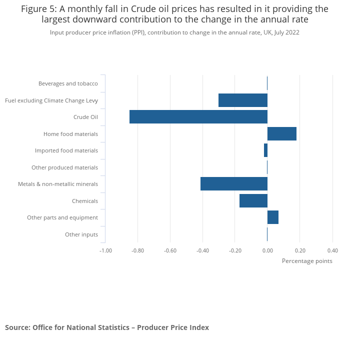 Output producer price inflation (PPI), contribution to change in the annual rate, UK, July 2022