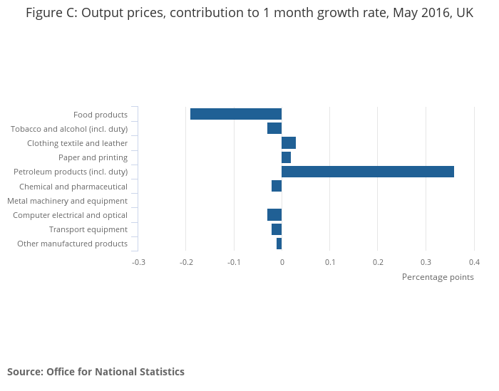 Download this chart Figure C: Output prices, contribution to 1 month growth rate, May 2016, UK