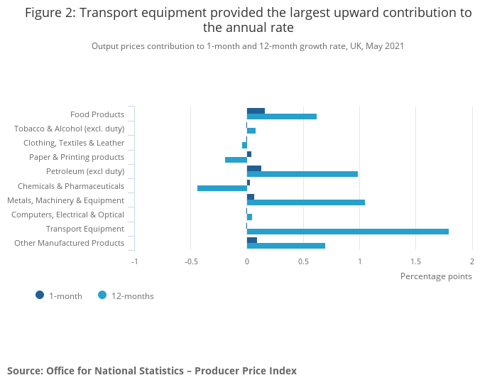 .xls .csvTransport equipment provided the largest upward contribution of 1.80 percentage points to the annual rate (Figure 2) and had positive annual price growth of 0.3% in May 2021 (Table 2).