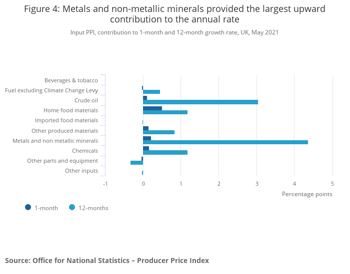 Figure 4: Metals and non-metallic minerals provided the largest upward contribution to the annual rate