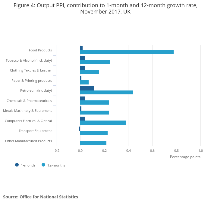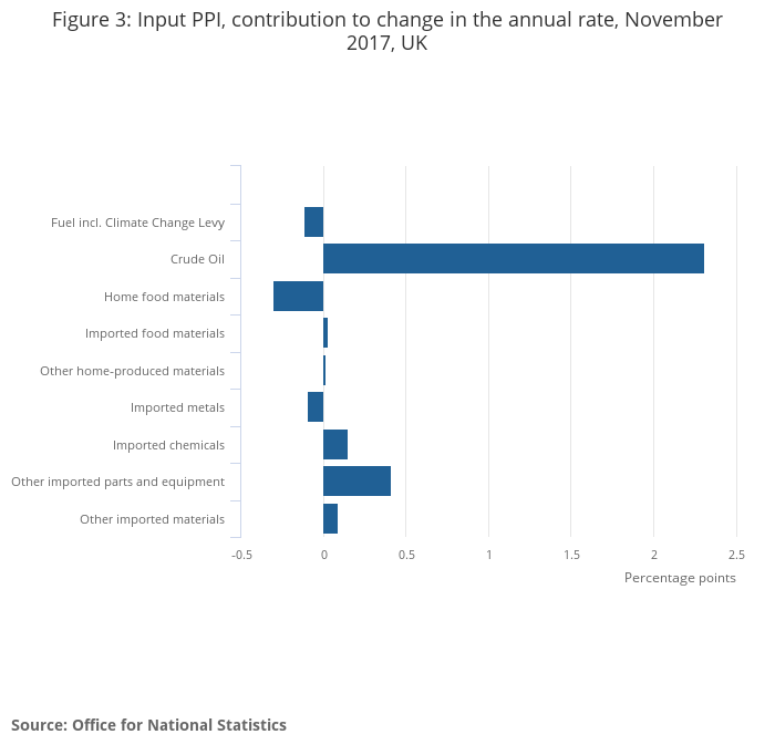 Crude oil also provided the largest upward contribution to the monthly rate at 1.20 percentage points, which was driven by price growth of 7.6% between October and November 2017. This is the highest the monthly rate has been for crude oil in 2017.
