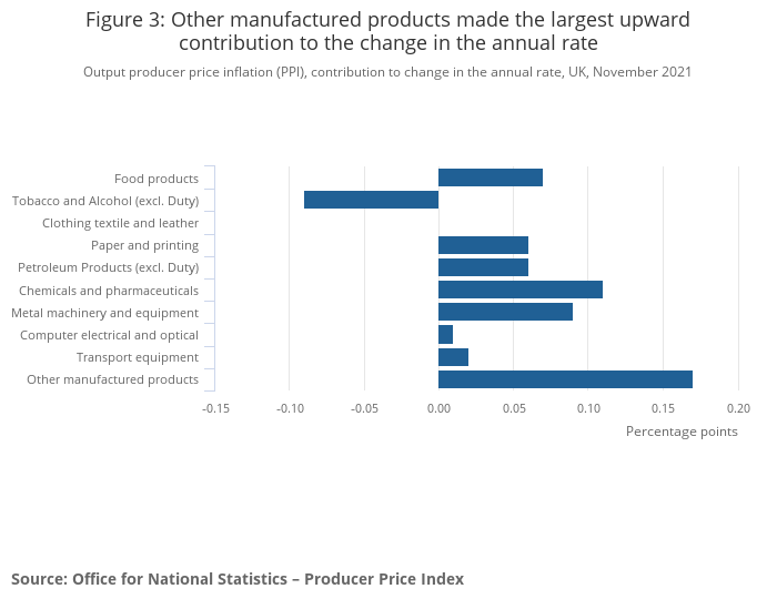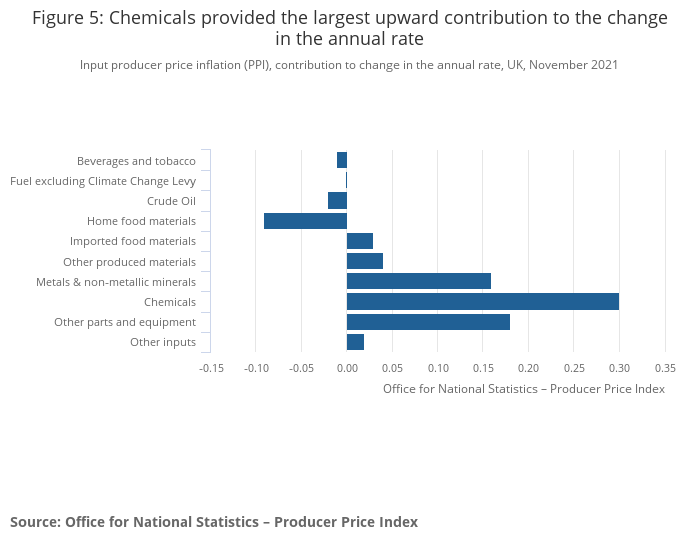 Input producer price inflation (PPI), contribution to change in the annual rate, UK, November 2021