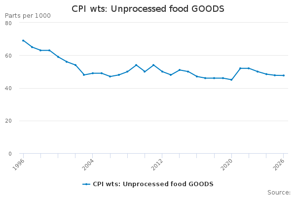 Download this time seriesCPI wts: Unprocessed food GOODS