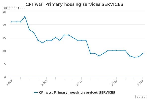 Download this time seriesCPI wts: Primary housing services SERVICES