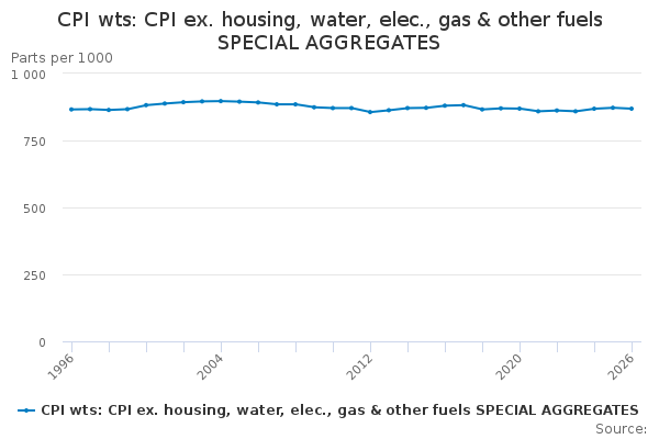 Download this time seriesCPI wts: CPI ex. housing, water, elec., gas & other fuels SPECIAL AGGREGATES