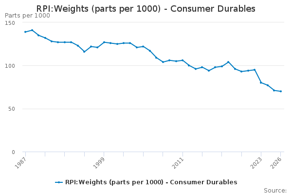 Download this time seriesRPI:Weights (parts per 1000) - Consumer Durables